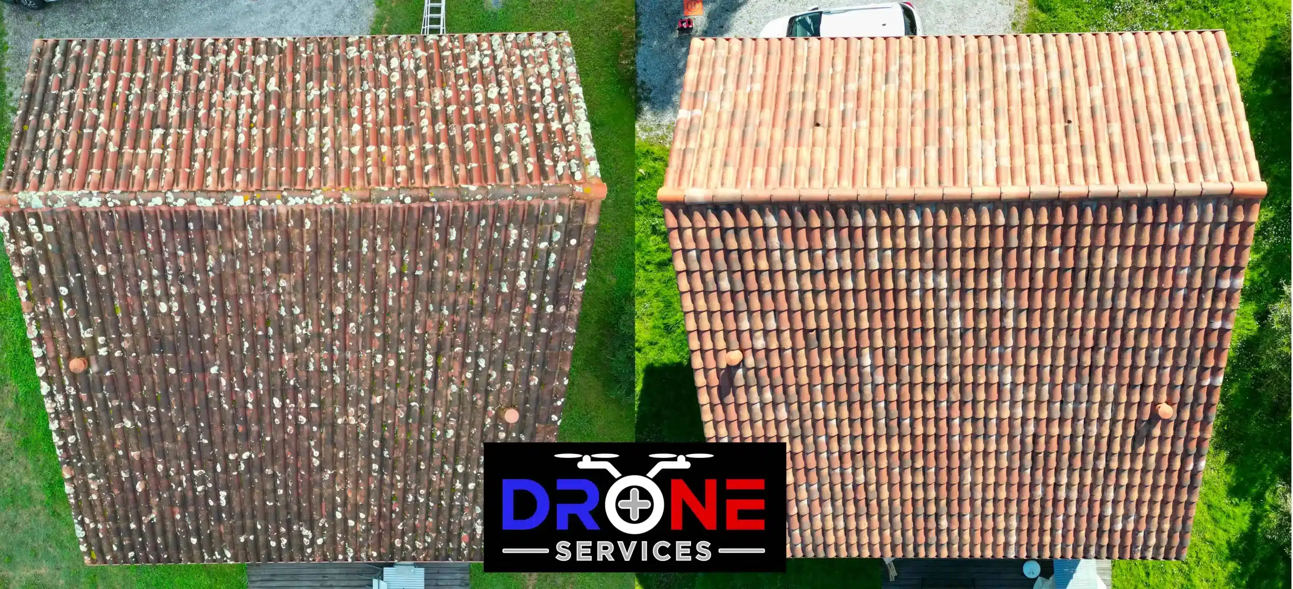 Nos drones pulvérisent des solutions de nettoyage de qualités directement sur la toiture, sans contact direct.